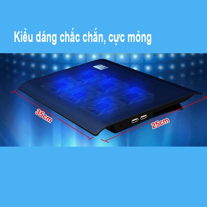 • 6 quạt yên tĩnh loại I 8015 động cơ siêu tốc độ giúp Laptop tản nhiệt nhanh chóng, đèn Led xanh.