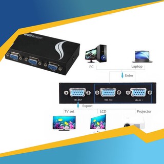 TÍNH NĂNG CỦA BỘ CHIA TÍN HIỆU VGA 2 Vào 1 Ra Bộ chia VGA 2 vào 1 ra là thiết bị hỗ trợ chuyển mạch tín hiệu từ 2 nguồn phát VGA vào chung 1 màn hình, máy chiếu thông qua cổng VGA, hỗ trợ gộp tín hiệu với khả năng chọn nguồn phát thông qua nút bấm chọn kênh trên thiết bị Bộ chia tín hiệu VGA 2 in 1 out dễ dàng sử dụng, bạn chỉ cần kết nối các thiết bị với nhau thông qua cáp VGA là có thể sử dụng, không cần cài đặt thêm phần mềm hay driver, không cần nguồn cấp điện ngoài Được thiết kế hình hộp với lớp vỏ bọc kim loại chắc chắn, bền bỉ, Bộ gộp VGA 2 vào 1 ra có khả năng hoạt động bền bỉ và ổn định, thiết kế nhỏ gọn cho bạn dễ dàng chọn lựa vị trí đặt thiết bị khi lắp đặt, không gây cản trở Hỗ trợ nhiều độ phân giải khác nhau, tối đa lên tới 1920x1440, hỗ trợ hình ảnh sắc nét