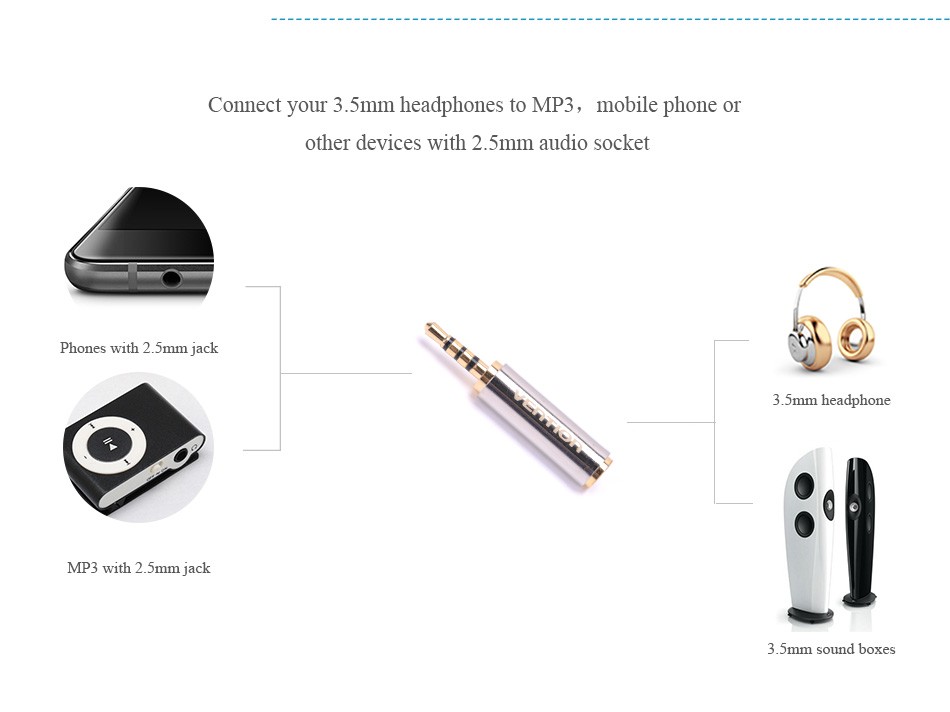 - Sử dụng cho các  máy nghe nhạc, laptop, điện thoại chân audio chuẩn 2.5mm sang chuẩn 3.5mm