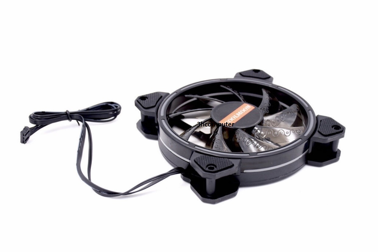 Quạt tản nhiệt Coolmoon RGB v9 - Thiết kế fan kích thước 12cm. - Tích hợp đèn led tại viền quạt và tâm quạt, giúp quạt phát sáng tối đa. - Cánh quạt màu đen có hoa văn chia sáng. - Tốc độ quay quạt: 1600rpm - Nguồn: 12v - Cấp nguồn và khiển chế độ Led qua bộ điều khiển Hub coltroler....